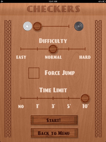 Play against the iPad in Easy, Normal or Hard to determine the difficulty of the game.
